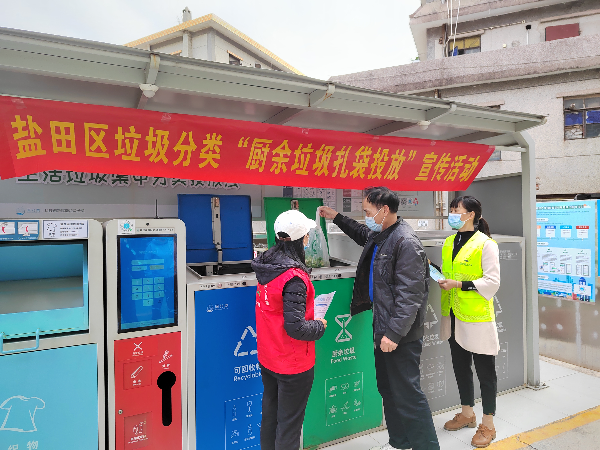 厨余垃圾的投放、收集和处理,是垃圾分类工作体系中的重要一环。根据《深圳市生活垃圾分类管理条例》的相关要求,居民需定时定点、“破袋”投放厨余垃圾,不过,虽然有利于厨余垃圾的精确收集,但“破袋”操作太麻烦,一定程度上也“打击”了居民参与垃圾分类的积极性。从2月1日开始,盐田区部分小区开始启动家庭厨余垃圾可“扎袋”密闭投放试点,希望通过前端、中端、末端全流程优化和改进,探索解决厨余垃圾分类“破袋投放难题”。