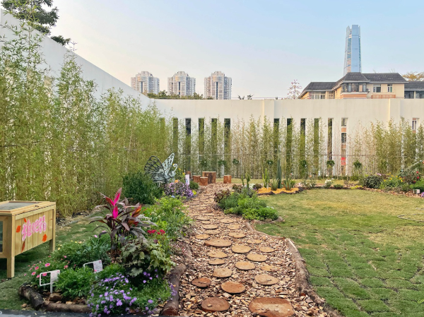 蒲公英白魔法花园位于市分类中心二楼蒲公英书吧旁,于2022年12月落成。花园的设计由园岭实验小学的少先队员们深度参与,充分体现了花园的“共商共建共治共享”理念。花园坚持零废弃原则,其中包括牛奶盒再生材料制成的化蝶装置,枯枝落叶再加工的有机营养土和覆盖物,花园里的木墩,木饼,树枝围边均来自荔枝公园的树木修剪,充分展现了Reuse、Recycle、Reduce的“3R白魔法”。