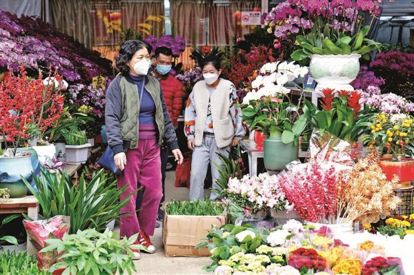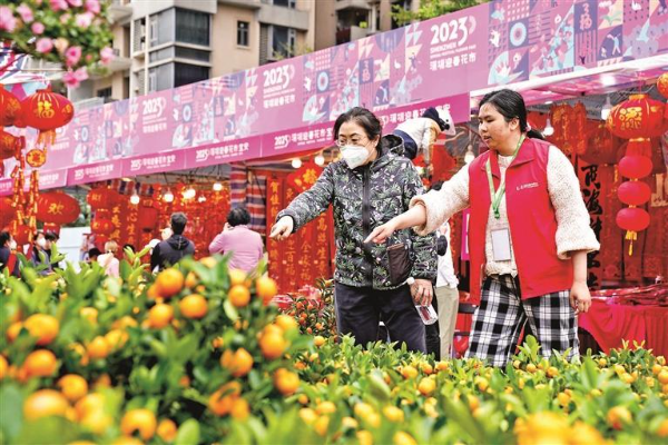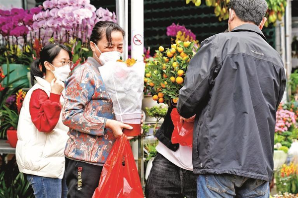 不少市民早早来到宝安迎春花市,挑选年花年桔,为新的一年讨一个好意头。
