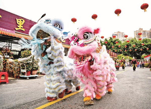 宝安迎春花市以“热烈、祥和、安全、有序”为目标,以“1+N”形式开展,区分会场由西乡街道办具体承办,面积约2万平方米,档位约80个,以销售年桔年花、传统鲜花、盆栽园艺、年货为主,同时以摆放鲜花、悬挂灯笼彩旗、迎春舞狮表演等形式营造节庆氛围。而宝安区各街道购花点,则以传承传统民俗文化和方便市民群众逛花、赏花、购花、迎春祈福为主,通过自有展销店铺和少量临时摊档展销年花,并举办一系列书写对联、文创精品展览等活动,展现宝安的年俗文化特色,喜庆欢腾的春节元素随处可见。