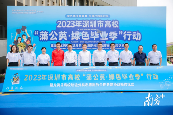 5月8日下午,2023年深圳市高校“蒲公英·绿色毕业季”主会场活动系列行动暨龙岗区垃圾分类志愿服务合作共建协议签约仪式在香港中文大学(深圳)举行。本次活动响应了全国城市生活垃圾分类宣传周号召,拉开了深圳市生活垃圾分类宣传月的序幕。