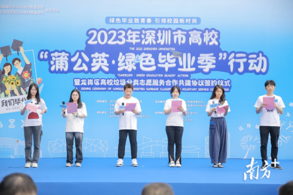 今年是深圳第二次举办高校“蒲公英·绿色毕业季”行动,本次行动将先后在龙岗区和南山区举办主会场活动,联动香港中文大学(深圳)、深圳北理莫斯科大学、深圳信息职业技术学院、电子科技大学(深圳)高等研究院、南方科技大学、深圳大学等全市十余所高校,通过在毕业季开展“跳蚤市场”创意集市、爱心义卖等系列活动,引导旧物回收利用,实现毕业旧物丢弃大减量,提升大学生垃圾分类意识,推动高校垃圾分类工作。
