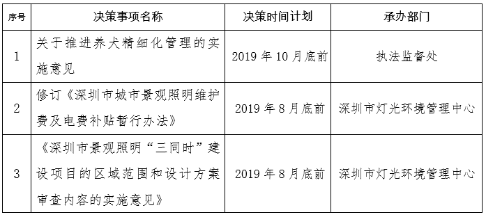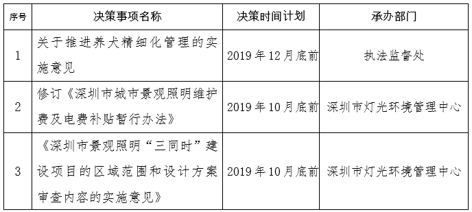 深圳市城市管理和综合执法局2019年度重大行政决策事项目录