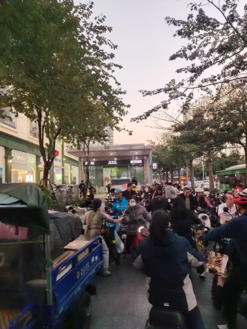 “知道不让摆摊,但是为了生活没办法,想赚钱,城管来了就得跑。”摊贩老郭感慨道。占道乱摆卖现象曾经一度在南山街道很常见。以荔秀社区为例,这片0.88平方公里的服装产业聚集区日均人流量超10万,曾经84档流动摊贩将人行道挤成“一线天”,每月相关投诉高达180余宗。