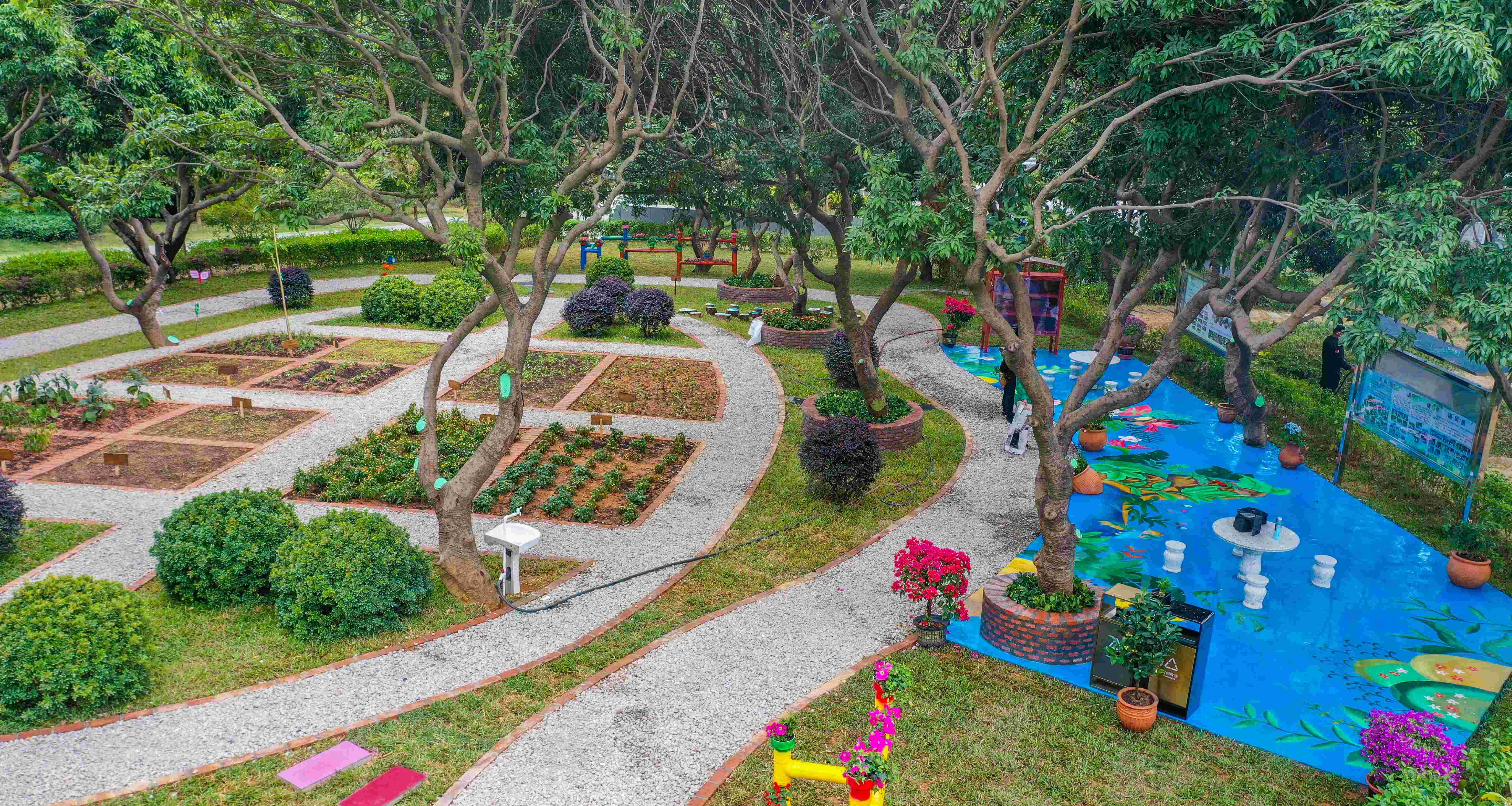 (2)在公园内创建了“清风园”共建花园,面积约1100平方米。原为一块林间荒地,经田寮社区义工联和居民共同改造后,花园建设有种植区、园路、阅读休闲区、二十四节气科普宣传步道、供休憩的石桌石凳,荒地变身为公园中幽静的小花园,成为公园的一个新亮点。
