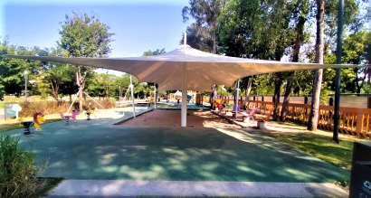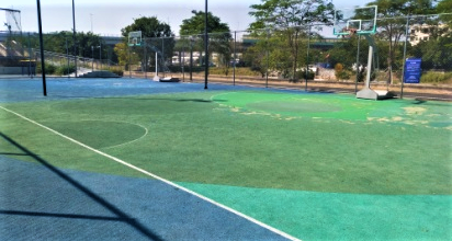 停车场共有40个停车位,1个篮球场,1个儿童乐园,1个水上皮划艇俱乐部驿站,总面积12910㎡(含停车场、篮球场)。