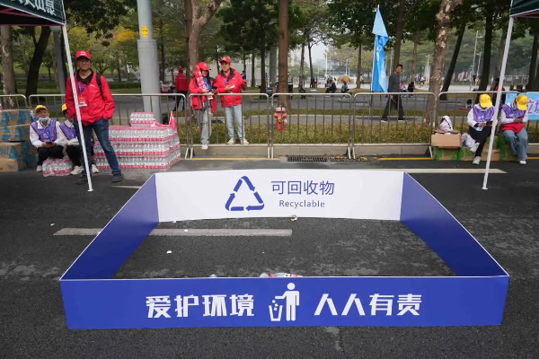 为了让大赛产生的垃圾能够得到分类回收,形成闭环管理,宝安区城市管理和综合执法局分别在海滨广场、国际会展中心安排了2辆再生资源回收车用于回收矿泉水瓶等可回收物,配套50个厨余收集桶收集香蕉皮等厨余垃圾,并由厨余运输车进行专项收运处理。在补给点设置可回收物、其他垃圾、厨余垃圾分隔池,以便参赛选手和市民游客分类投放垃圾。
