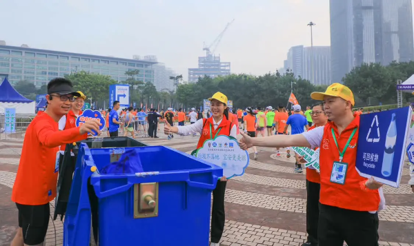 宝安区城市管理和综合执法局以同心守护向奔跑者致敬,用执着坚守诠释城管力量,在大型体育赛事中,深化垃圾分类宣传引导工作,让选手和市民养成生活垃圾分类投放良好习惯,引导大众积极践行绿色环保理念,助力垃圾分类成为低碳生活新时尚。