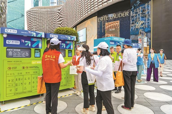 深圳全新推出可回收物“深i回收”品牌,吸引市民参观了解。