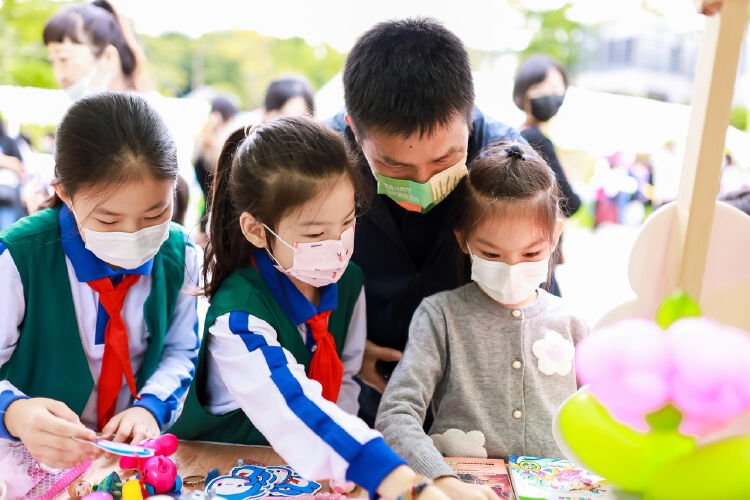 ▲ 大小朋友们穿梭在各个摊位间参加赢取“减”字小红花勋章活动。