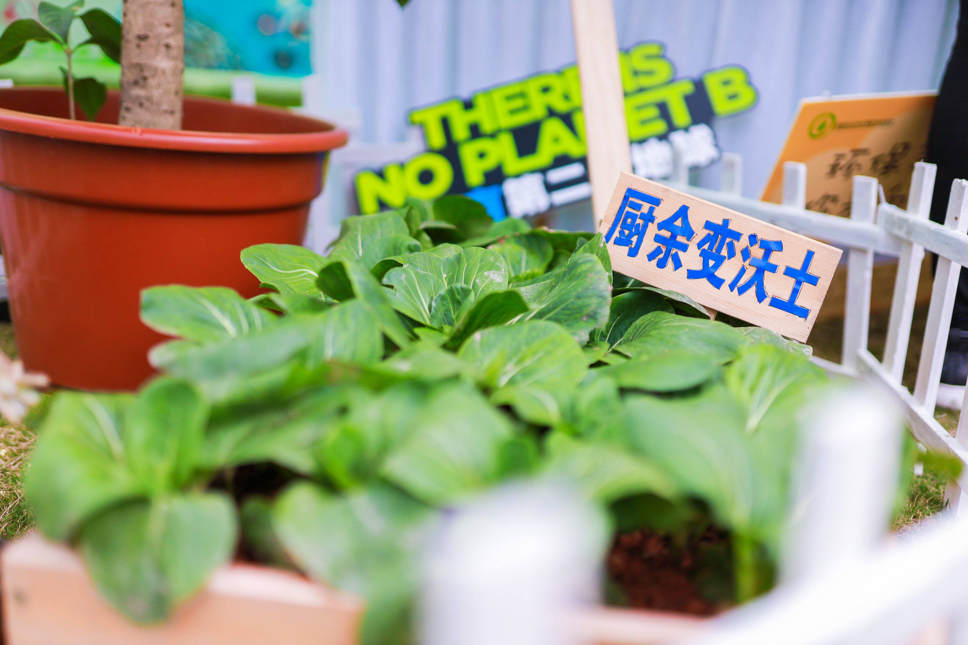 在莲花山公园椰风林的天然草地上,“芬享嘉年华”展区呈现圆形,现场参展单位围绕在一起简单直观地向市民展示垃圾末端处理的过程。