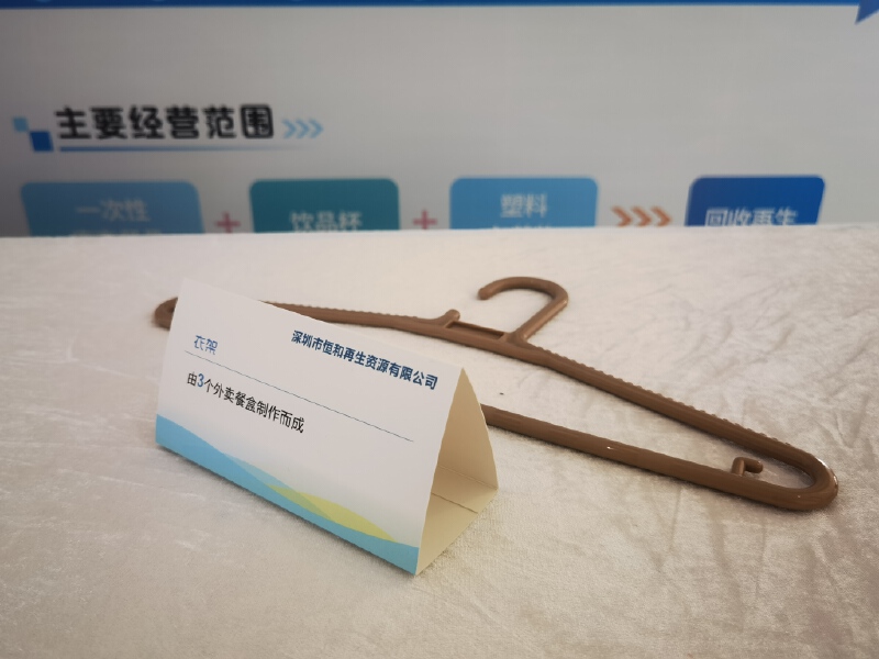 你可以想象吗?3个外卖餐盒可制作一个衣架;20个外卖餐盒就能生成一个垃圾桶;10个废弃塑料瓶能变成一件遮风挡雨的防晒衣……