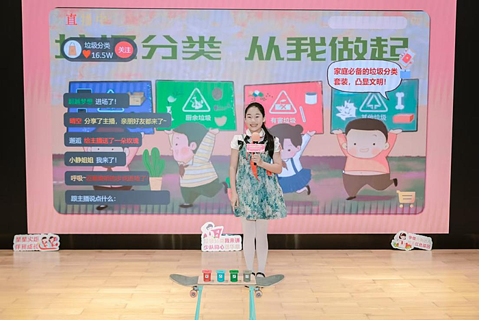 “这样的垃圾分类知识要不要!要!上链接!”深圳市龙岗区坂田街道坂田小学的周琳斐同学化身网络直播主播,将垃圾分类知识以生动有趣的直播形式“打包、出售”到观众心中。