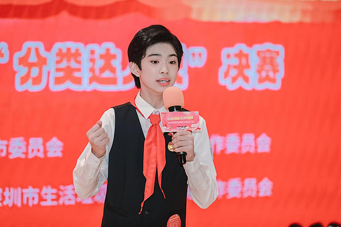 深圳市东晓小学的杨宛凝用生动的实例以及一段朗朗上口的快板表演,向在场的评委和观众展示了她对垃圾分类的深刻理解。她的演讲不仅包含了丰富的知识内容,还巧妙地融入了自己在日常学习、生活中的志愿服务实践经历,让在座的每一个人都能感受到垃圾分类的重要性。