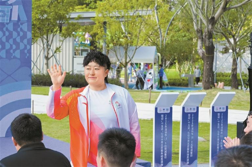 奥运会羽毛球女子双打冠军于洋在活动现场倡议一起参与垃圾分类。