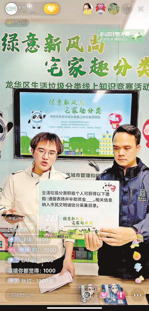 “没错,深圳市垃圾分类的起步阶段是2000年,恭喜这位朋友回答正确,获得我们的精美礼品冰墩墩钥匙扣!”E分分抖音直播间内,传出主播激昂的声音。