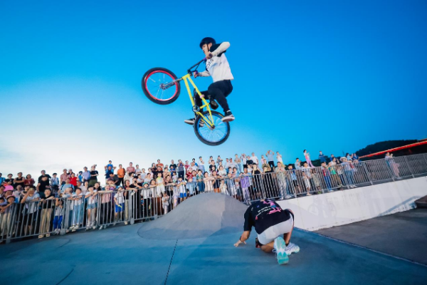 10月4日至6日,三大定点演出为市民带来视听震撼。碧湖区滑板场的“跃动纪元·极限秀场”汇聚BMX小轮车、滑板与极限轮滑表演,选手们腾跃翻转、精准落地,引来观众连连喝彩。