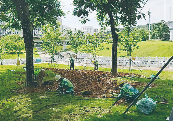 据统计,截至目前,龙岗区累计补植苗木约11000株,修剪苗木面积约3500平方米,修剪草坪面积约7500平方米,实现绿化垃圾“日产日清”,有力保障了沿线绿化景观的完整与美观。
