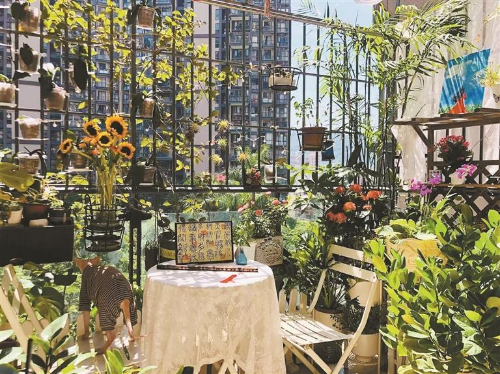 城中村居民也在这场活动中交出亮眼答卷:阳台面积5㎡以下,是城中村中难得的朝西小空间。卢女士为圆儿时田园梦,花半个月才找到这个合适的阳台,后续足足打磨一年多。改造中,她亲手将海边捡的贝壳拼成相框,用干花与麻绳串成漂流瓶风铃,一针针绕出捕梦网绳结,每一处装饰都藏着对生活的细碎期待。近三十盆植物铺满方寸之地,春天绣球缀着粉蓝花苞,夏天仙人掌舒展绿意,在城中村密密麻麻的楼宇间,开出了一方充满个性与温度的“空中田园”;还有一户家庭,全家动手改造城中村闲置小露台,没有复杂硬装,仅用错落花草填满角落,实现“一年四季,有家有爱有花”的愿景。