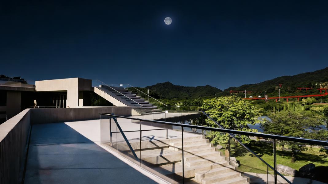 建筑采用岭南民居叠院风格设计,以“回”字形布局围合出“山水庭院”空间。在这里赏月,既能感受建筑的环抱感,又能仰望开阔的夜空,现代建筑与传统文化元素在此交融,营造出“人在景中、景在水里”的沉浸式体验。