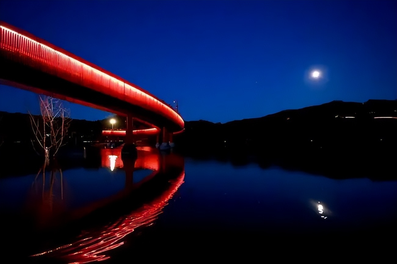 当皎洁明月遇上蜿蜒的虹桥,便构成了最诗意的城市夜色画卷。这条4公里长的“红丝带”上,藏匿着多处与月光对话的绝佳点位