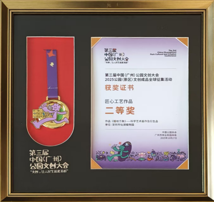 10月27日,第三届中国(广州)公园文创大会在广州正式开幕。深圳市仙湖植物园选送的“《时空胶囊》——种子标本收藏品”与“《植绘万象》——科学艺术画作及衍生品”的两份文创作品,凭借独特的创意、深刻的教育意义与深厚的文化内涵,分别荣获本次大会2025公园(景区)文创成品全球征集活动“匠心工艺作品”一等奖与二等奖。