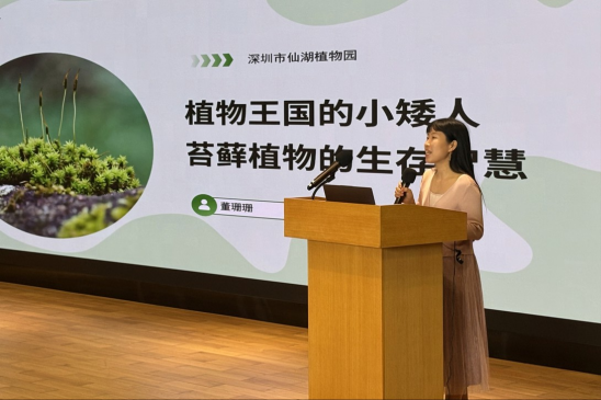 在专家讲座环节,深圳市仙湖植物园董珊珊博士以近期发表于国际顶级期刊《Nature Genetics》(自然-遗传学)的重磅研究成果为核心,开展了题为“植物王国的小矮人——苔藓的生存智慧”专题讲座,深入浅出地解析了苔藓植物的生态价值与科学奥秘,为参训教师带来最前沿的科学视野。随后,田雅娴工程师分享了苔藓植物在生物多样性保护中的关键作用,并现场指导教师使用苔藓工具包,将理论知识转化为可操作的教学资源。