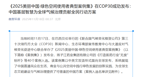 近日,在巴西贝伦举行的《联合国气候变化框架公约》第三十次缔约方大会(COP30)新闻中心,生态环境部宣传教育中心与大道应对气候变化促进中心联合举办了《2025美丽中国·绿色空间使用者典型案例集》发布会,由深圳市仙湖植物园提供专业支持的中山市迪茵公学“植物科普探究园建设实践”等案例入选,以中英文双语形式面向全球发布,系统展现了中国普通民众在生活、商业与公共空间中践行绿色发展的创新实践,为全球生态文明建设与气候治理提供了可借鉴的中国方案。
