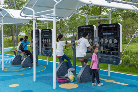 室外智能健身房:深圳公园室外智能健身房融合了人工智能、大数据等技术,首次将国家队体能训练技术应用到全民健身场所。市民扫码即可免费进行体质测试,系统根据个人数据量身定制运动方案,并配备数字化训练、智能竞赛等功能区域。截至2025年底,深圳公园已投放125套室外智能健身房,累计使用近8000万人次,让市民在家门口享受国家队体能训练技术。