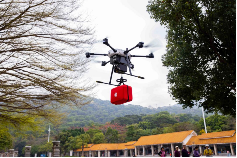 AED无人机急救:2025年3月,深圳公园首次落地AED无人机急救配送项目,为全国首创。项目通过无人机搭载AED设备构建“5分钟社会救援圈”,在塘朗山郊野公园、凤凰山森林公园、石岩湿地公园、罗田森林公园和福海河公园落地。5分钟内无人机救援半径可达4公里,有效覆盖范围约50平方公里,约等于布设150台固定AED的覆盖范围,为心脏骤停患者争取黄金救援时间。