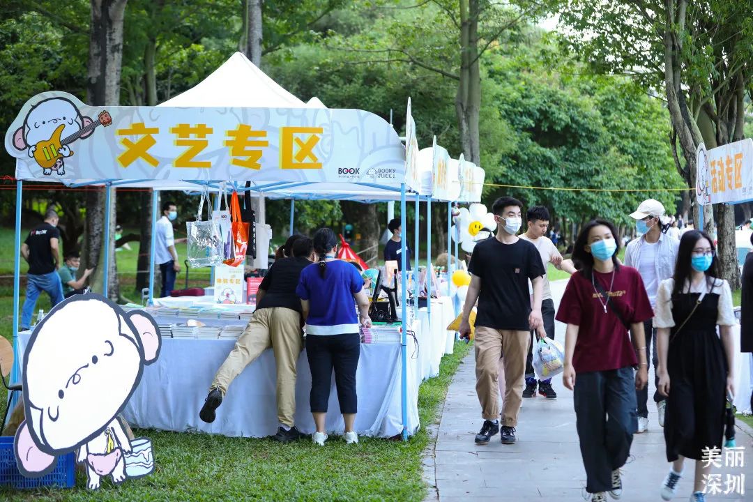 2023年春节期间,深圳市城市管理和综合执法局在莲花山公园莲花湖畔,打造了全新的公园营地书吧、共享露营场景、湖畔音乐聚会——“YUAN生活城市营地”,向市民开放游玩。