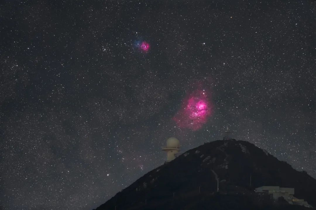 ▲ 深圳市天文台上空的礁湖星云和三叶星云 摄影:陆不喝