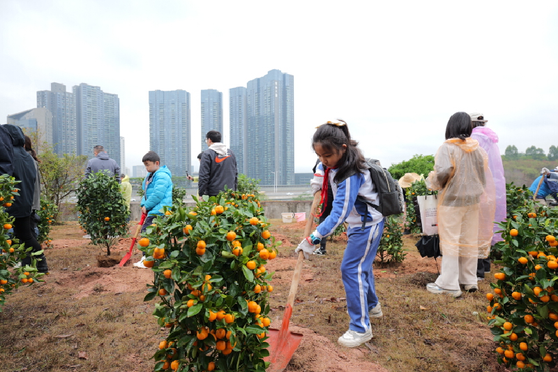 回植现场,市人大代表、政协委员、学校、社会组织志愿者以及深圳市生活垃圾分类管理事务中心、南山区城市管理和综合执法局相关负责人手持铁锹、水桶等工具,将回收的年花年桔重新栽种入土壤中,让年后“过气”的年花年桔再续新一年的绿意。同时,为更好宣传垃圾分类减量、绿色生态理念,每棵成功回植的年花年桔上还挂有环保树牌,牌上写下了回植人的环保寄语。现场的蒲公英少先队员也同步进行了年花年桔写生,为本次活动定格独特的回忆。