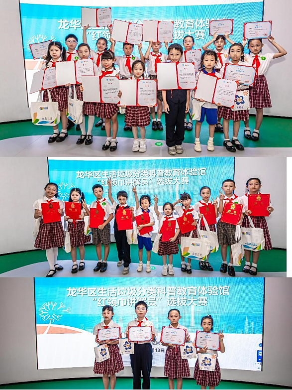 7月13日,龙华区城市管理和综合执法局联合龙华区教育局主办的“红领巾讲解员”选拔大赛,在龙华区生活垃圾分类科普教育体验馆圆满举行。此次大赛面向全区中小学生公开选拔,包括初赛简历筛选和决赛现场选拔两个环节,最终10名学生被聘为龙华区生活垃圾分类科普教育体验馆“红领巾讲解员”。