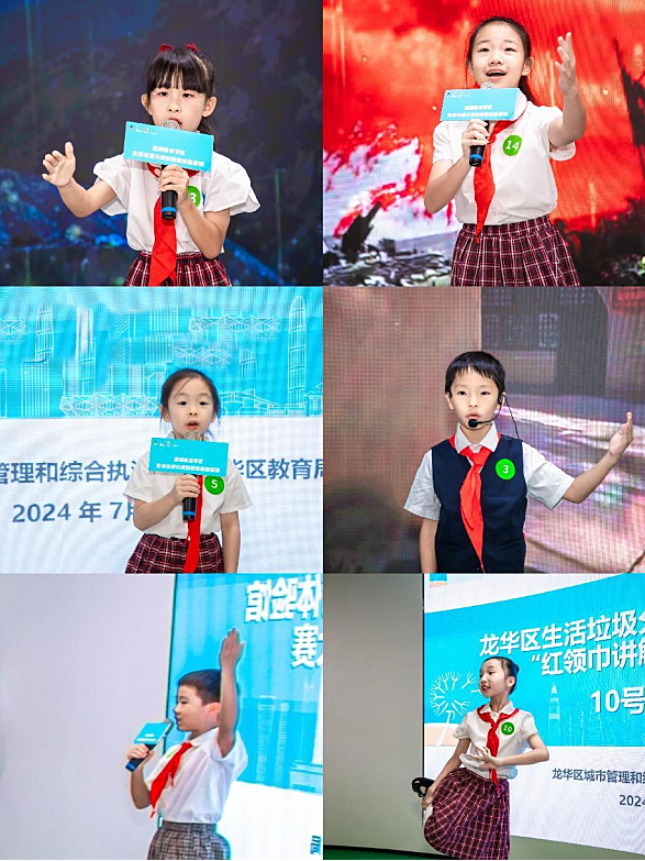 随着比赛的开始,选手们依次上台进行风采展示,或引吭高歌,唱出稚嫩童音;或翩翩起舞,秀出优美身姿;或慷慨激昂,朗诵动人的诗篇;或声情并茂,讲述自己的梦想……各种才艺精彩纷呈,让观众目不暇接,掌声雷动。最终,10位选手凭借出色的表现和扎实的垃圾分类知识素养脱颖而出,被聘为龙华区生活垃圾分类科普教育体验馆“红领巾讲解员”。