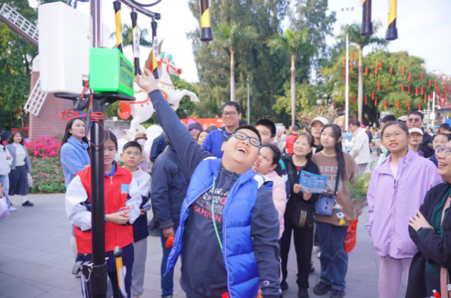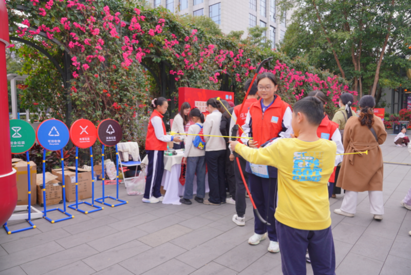 互动游戏区更是热闹非凡。“垃圾不落地”“垃”弓射箭、分类丢沙包、快问快答……孩子们在家长带领下,闯关赢奖,抽取定制红包、环保袋、植物微景观等带着绿色寓意的精美礼品。