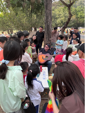 比起传统英语教学,丹尼尔看重综合学习。他将音乐、艺术、写作,以及自然与商业等元素融入课堂,探索更具实践性的学习方法。在英语角上,他还会弹奏吉他,演唱自己创作的歌曲,让语言学习不那么枯燥无味。