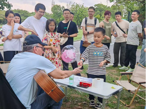 在莲花山公园与行人交流的经历,也不断带给他新的感受。他特别喜欢与孩子们沟通:“小孩子是最无畏的,他们会直接走到你面前,说心里话。”他表示,有的孩子甚至会直白地问丹尼尔“为什么他的鼻子这么大?”这一天真烂漫的问题让交流更加有趣且真实。