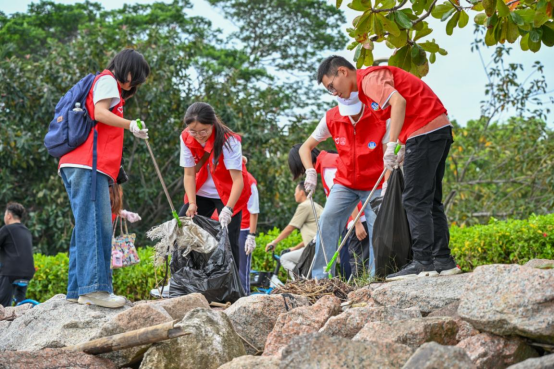 2.“护航十五运·山海守护者”专项志愿服务。10月25日至31日,总队开展“护航十五运·山海守护者”系列专项志愿服务活动,全力以赴为第十五届全国运动会营造优美整洁的城市环境。活动中,志愿者们俯身拾捡沿途杂物,用心守护海岸线的洁净风貌。他们不仅以实际行动还原自然之美,更积极向游园市民和游客传递“垃圾不落地”“我的垃圾我带走”的文明游园理念,让环保意识在潜移默化中深入人心。
